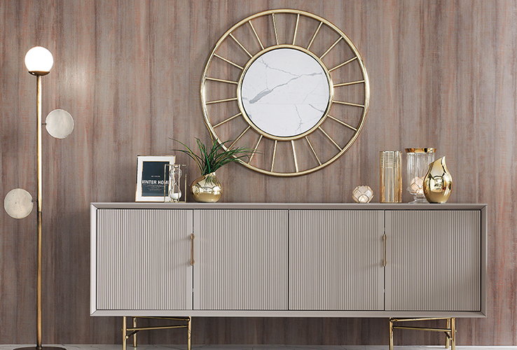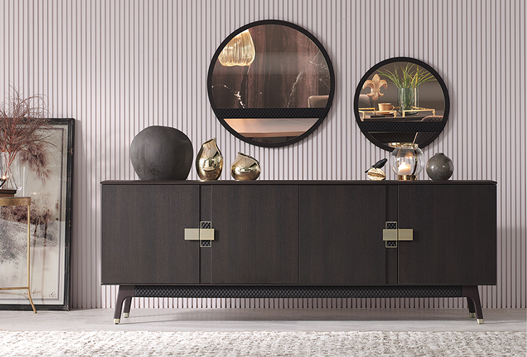 ست اتاق غذاخوری مدل NAVONA با ارائه غنای بصری توسط انتخاب جزئیات دستگیره‌ی طلای پاتینا با همراه با ر ...