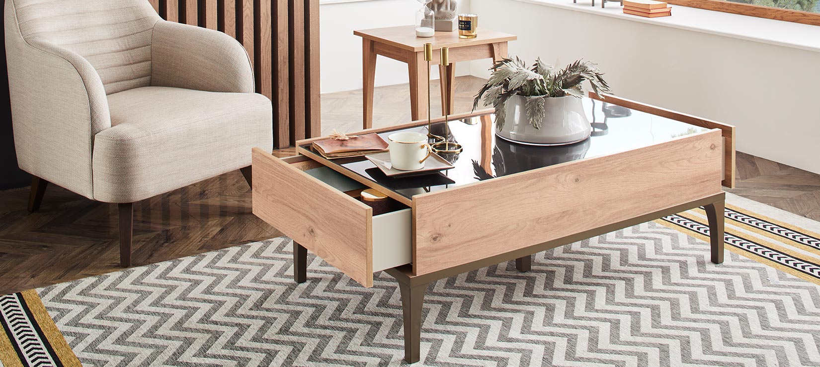 میز جلو مبلی SONA که منعکس کنندهی جلوهی قوی و گرم چوب با رنگ قهوهای کمرنگ است، با ساختار خاص پایههای خود جزئیات طراحی مدرن را برجسته میکند. با داشتن گزینههای میزها با سطح شیشهای میانی و جانبی سازگار با سری، این میز تأثیری مدرن و پیچیده بر روی فضاهای زندگی شما بر جای میگذارد.