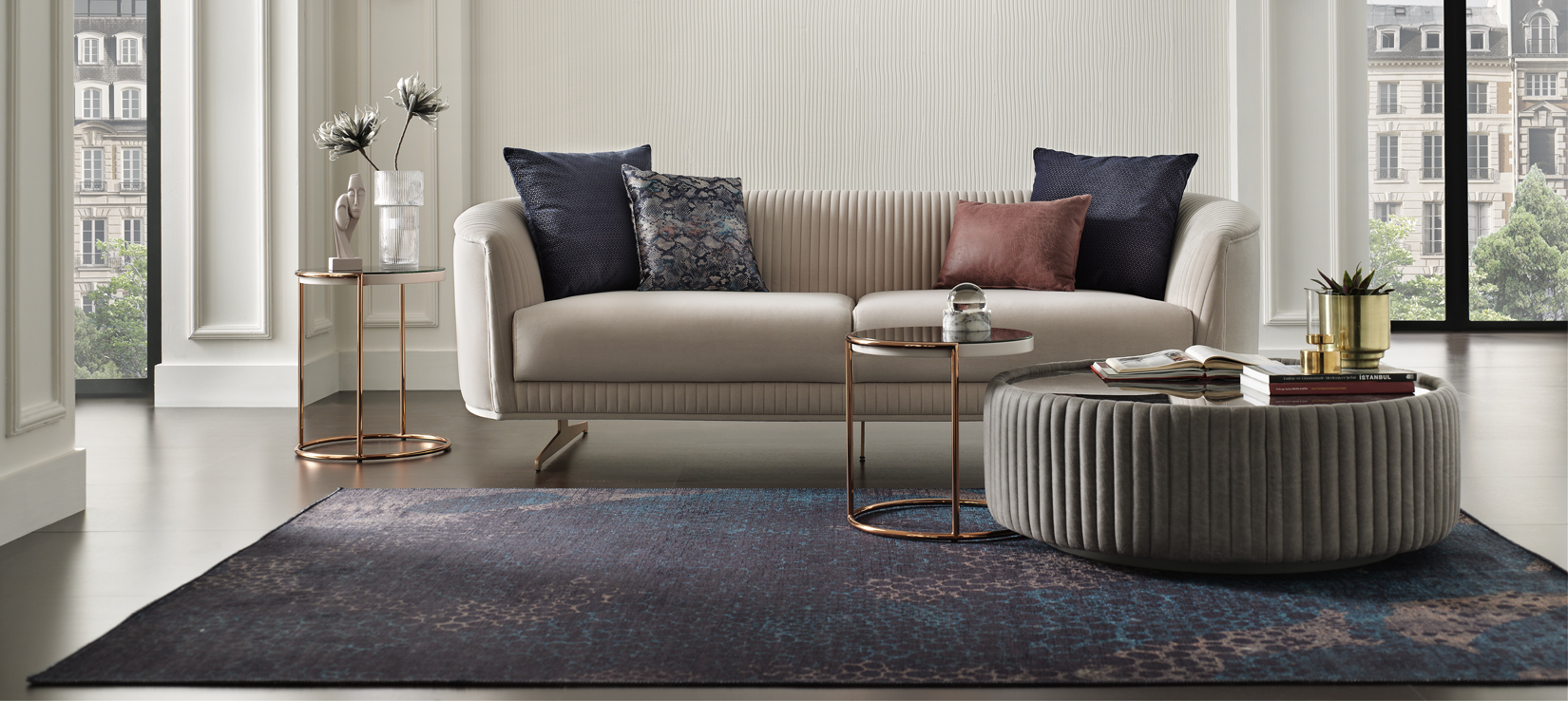 میز جلومبلی VIENNA با طراحی مدرن و جزئیات ظریف با فرم گرد و رویه ی سنگ مرمر، فضایی چشمگیر و خاص ایجاد می کند.
