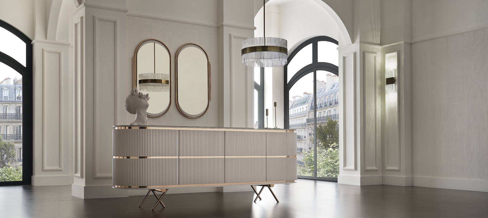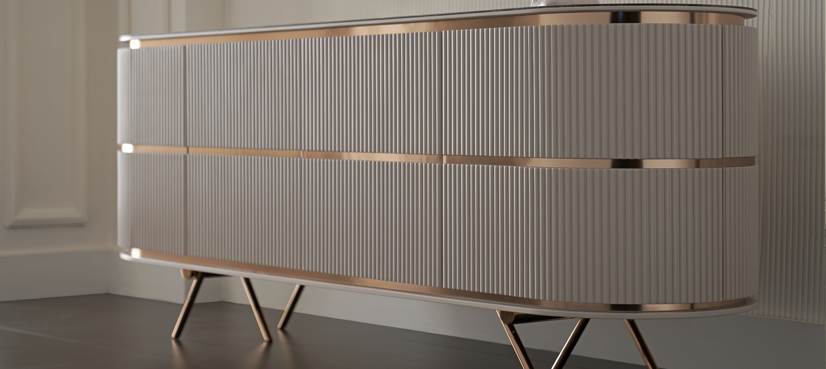 سرویس غذاخوری VIENNA با تلفیق طراحی معاصر و جزئیات چشمگیر به همراه صفحه ی شیشه ای، فضایی مدرن و رمانتیک به ارمغان آورده و نظر هر بیننده ای را جلب می کند. همچنین بوفه VIENNA با طراحی مدرن و لوکس به همراه جزئیات ظریف و باند فلزی مخصوص این سری ظاهری بی نقص ارائه داده و فضایی شیک ایجاد می کند.