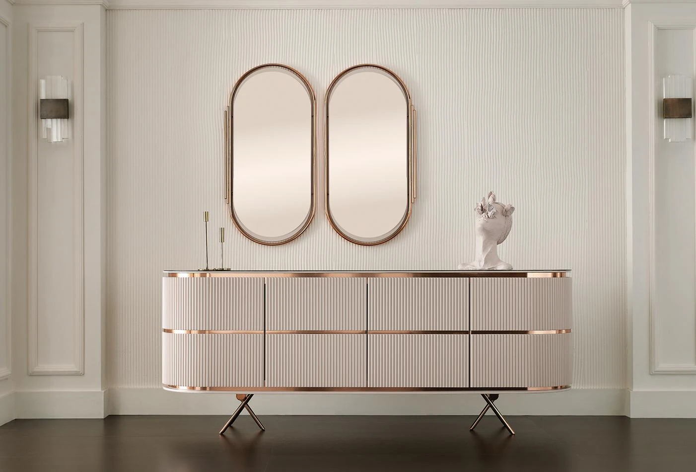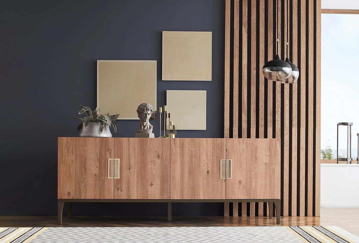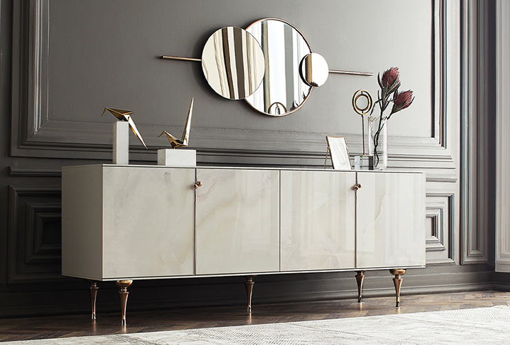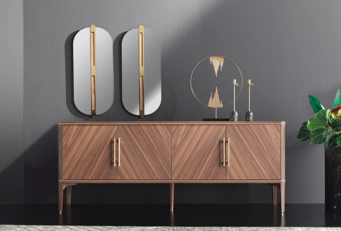 ست اتاق غذاخوری مدل NAVONA با ارائه غنای بصری توسط انتخاب جزئیات دستگیره‌ی طلای پاتینا با همراه با ر ...