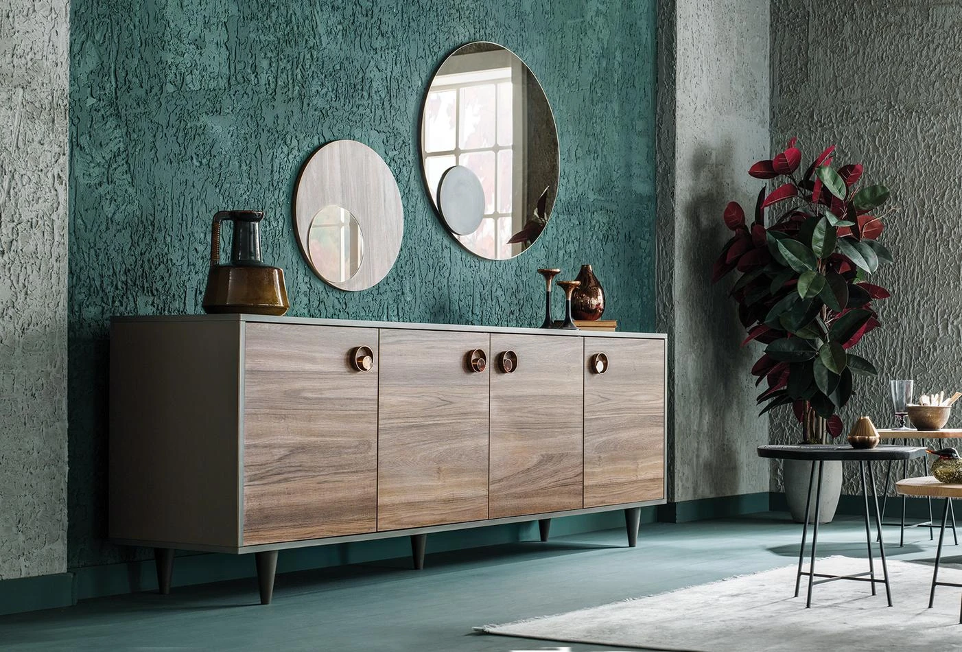 میز ناهارخوری ROSA بازتابی چشمگیر از سبک خانه شما که ترکیبی از رنگ گردویی و دودی، آینه های تزئینی... ...