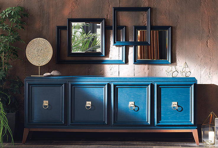 پوشش 100% طبیعی چوب بلوط در تمامی قسمت های محصول رنگ آبی پروسیا بی نظیر قاب آینه مدرن... ...